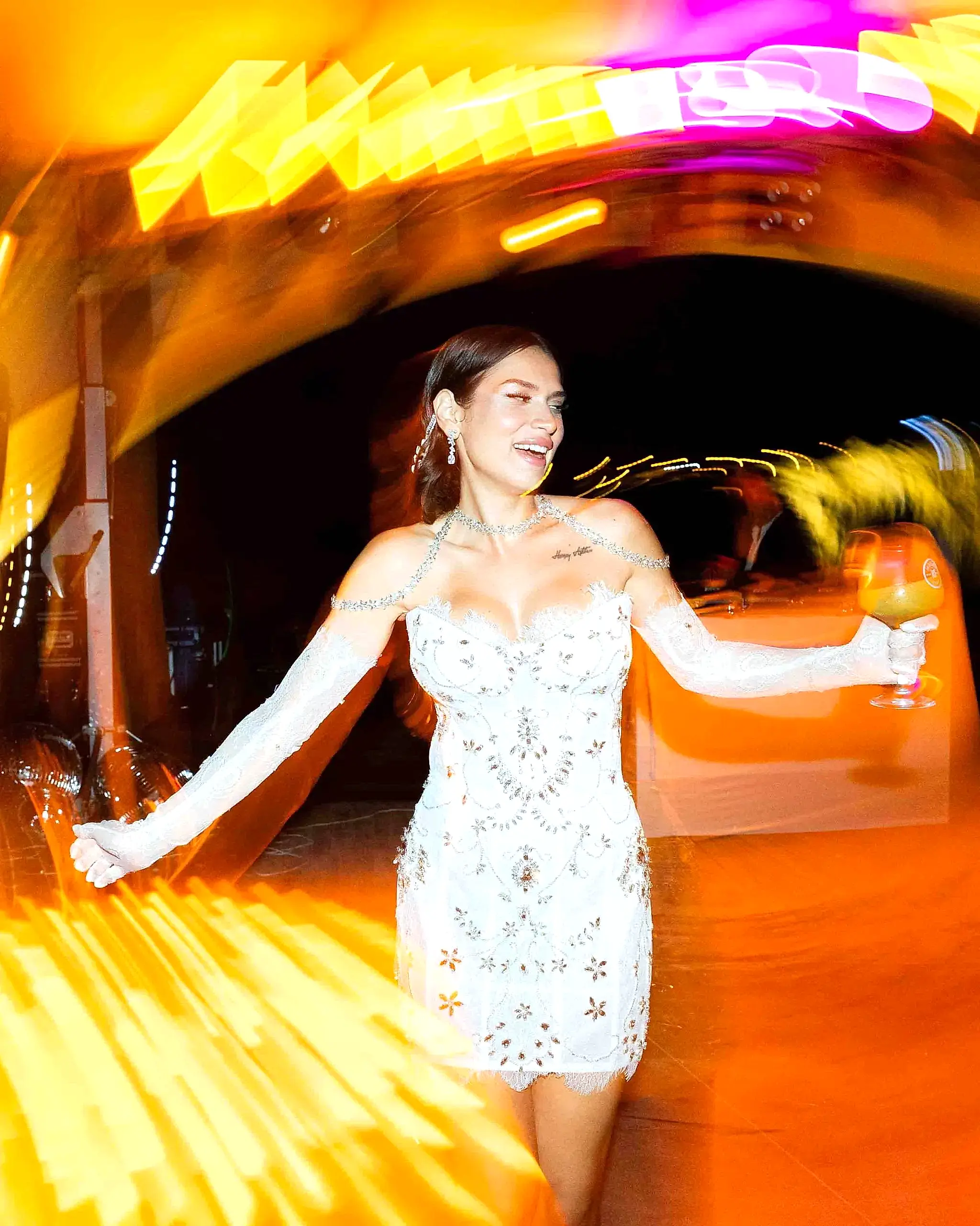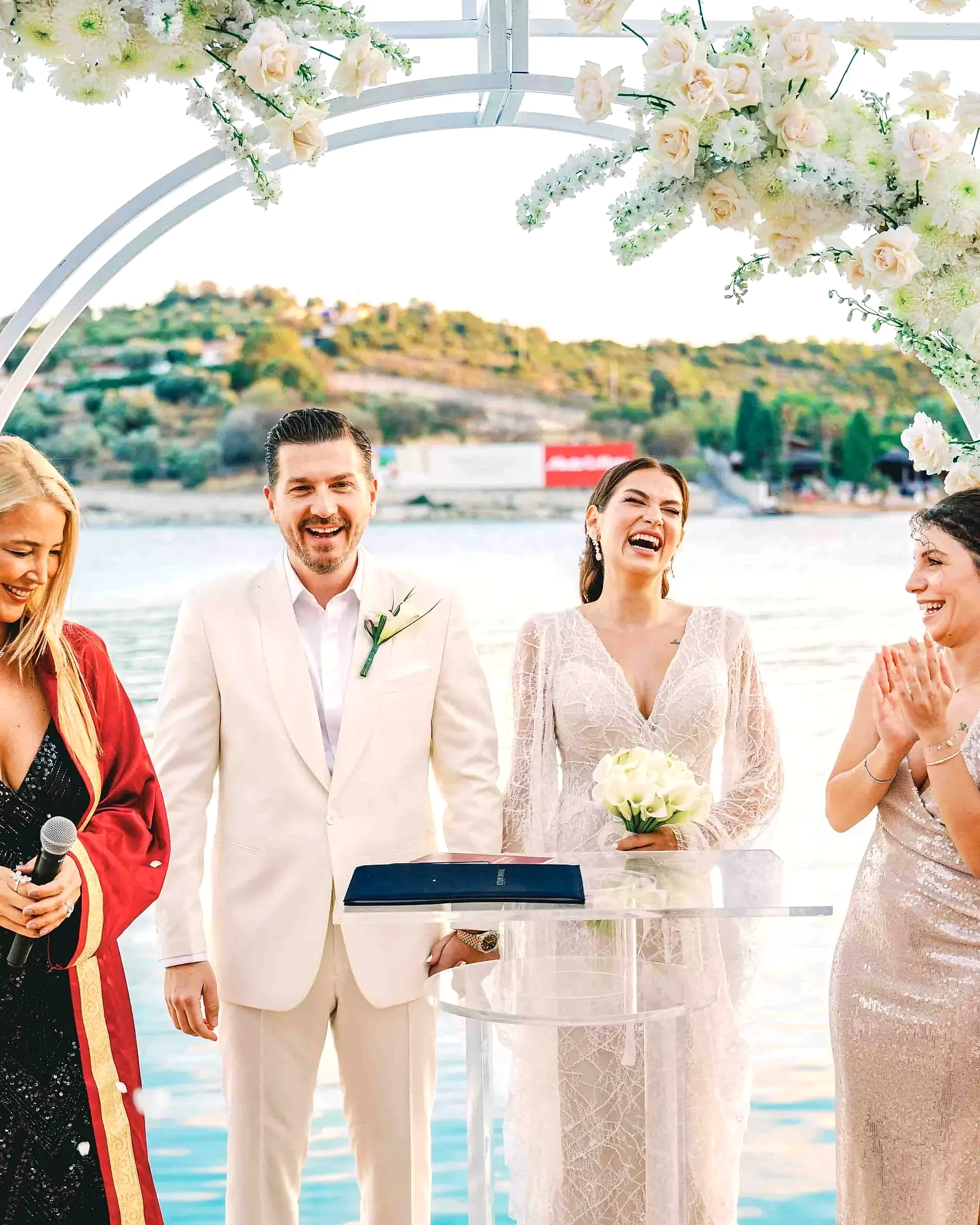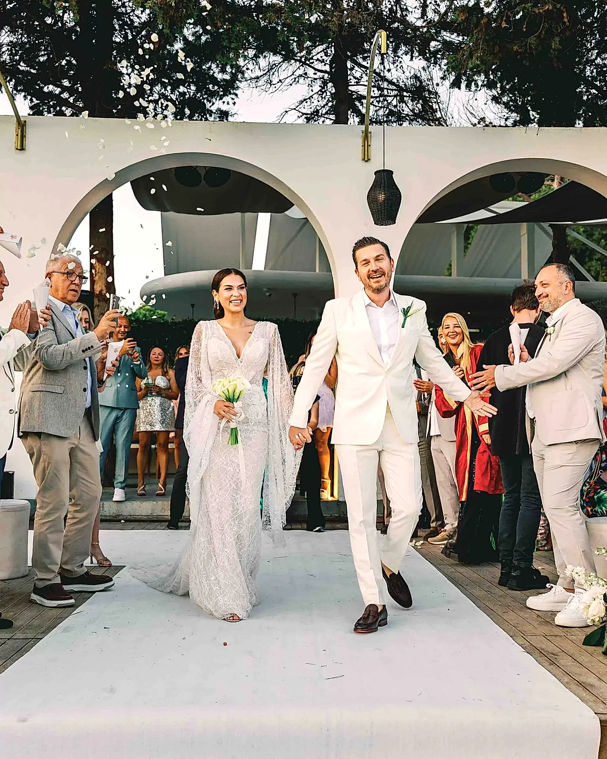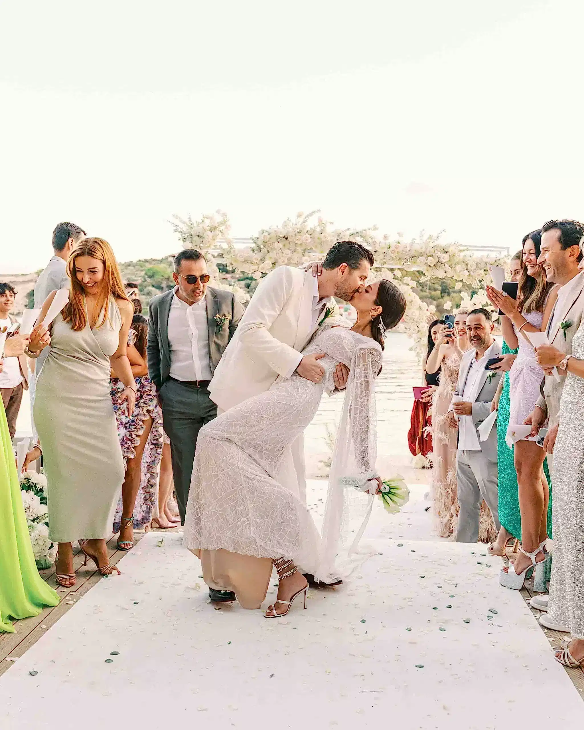 Tüm detaylar tamamlandığında, çiftimiz aşklarını kutlamak için OM Paparazzi’nin büyüleyici atmosferinde davetlileriyle bir araya geldi. Çeşme’nin en özel mekanlarından biri olan bu lokasyon, denize sıfır konumu ve şık dekorasyonu ile düğüne masalsı bir hava kattı.