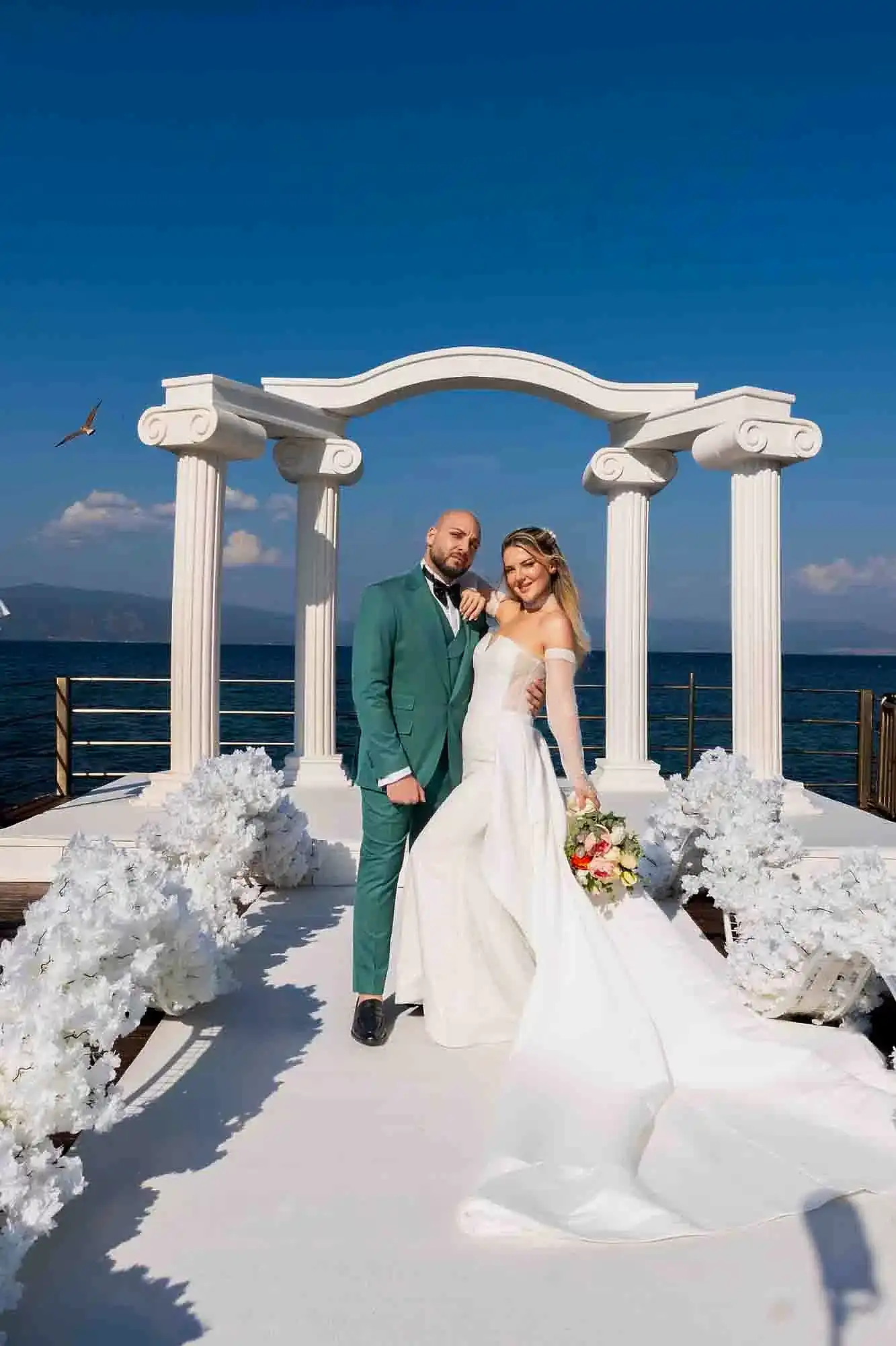 Düğünümdeki her detay, bana özgü bir şıklığı ve zarafeti yansıtıyordu. U&S Haute Couture imzalı gelinliğimle çok rahat ama bir o kadar da şık hissettim. Saçım için Büşra Zararsız’ın elleriyle gerçekten hayalimdeki gibi bir görünüm oluşturdum. Çiçekler için Braya Fleur’ün estetik bakış açısı, atmosferi çok güzel tamamladı. Galia Accessories’in taç seçimi, düğünümdeki en özel parçalardan biriydi. Studio Rain Shoes’un rahat gelin ayakkabılarıyla zarifçe hareket ederken, gün boyunca Bando Nilüfer’in enerjik müzikleri de düğünümüze çok renk kattı.